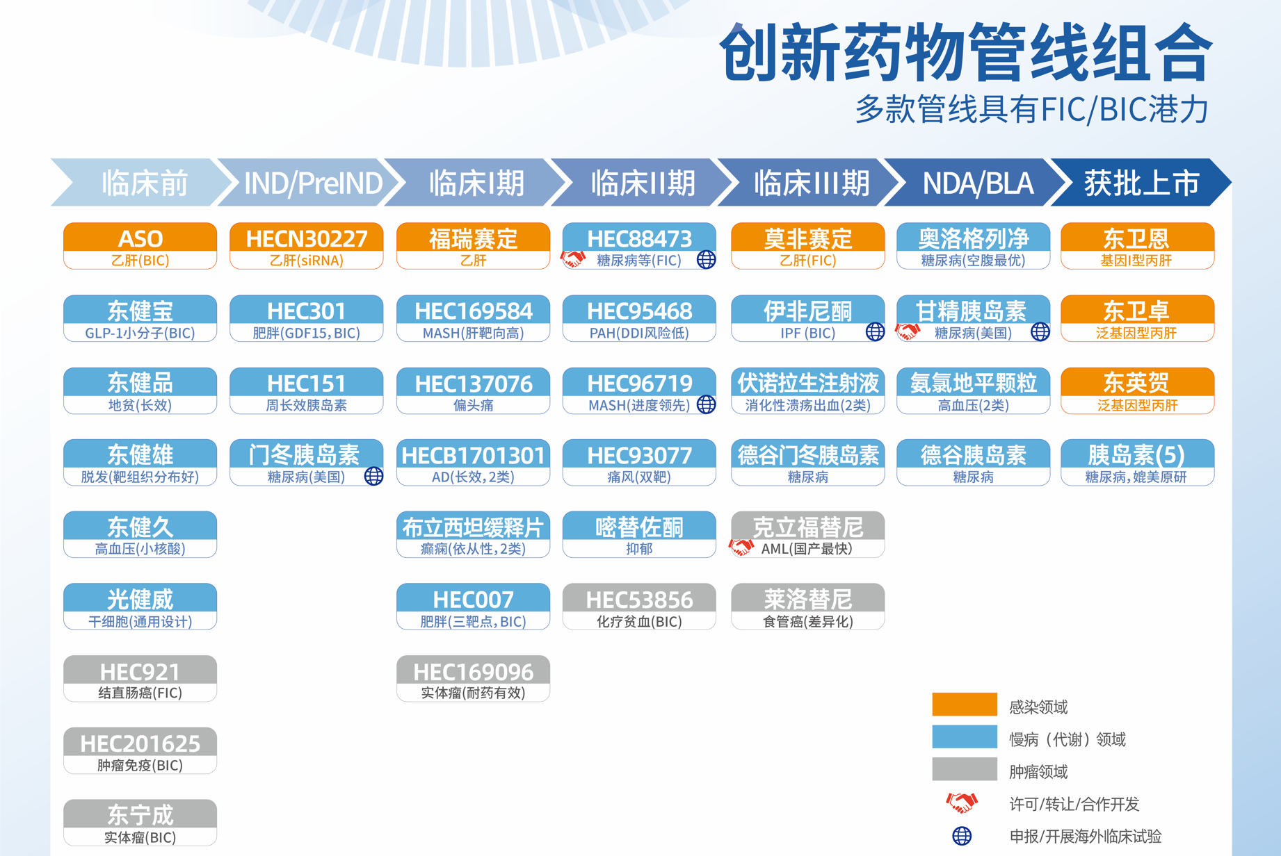 慢病领域:已建立丰富的糖尿病药物组合,还将研发范围延伸至肺纤维化、慢性阻塞性肺病、哮喘等呼吸系统疾病,以及痛风、肥胖等代谢疾病;